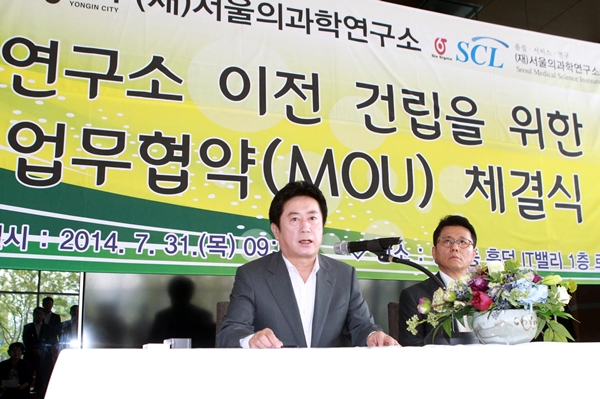 정찬민 시장은 협약식에서 “글로벌 헬스케어그룹으로 발전하는 (재)서울의과학연구소의 흥덕 IT밸리 이전 건립이 국내 헬스케어 모델의 수출 경쟁력 강화와 용인시의 지역경제 활성화에 기여할 것으로 기대한다”고 밝혔다.