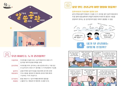 ‘알쓸공관’은 공동주택 운영에 필요한 필수정보를 간략히 요약하고, ‘입주자’, ‘사용자’, ‘관리주체’ 등 법률적 용어의 해석을 달아 누구라도 한번 보면 공동주택 관리를 정확하게 이해할 수 있도록 했다. 특히 단원별로 만화를 삽입해, 누구나 쉽게 접하고 기본개념을 이해할 수 있도록 10장 이내로 구성돼 있는 신개념의 소책자이다.