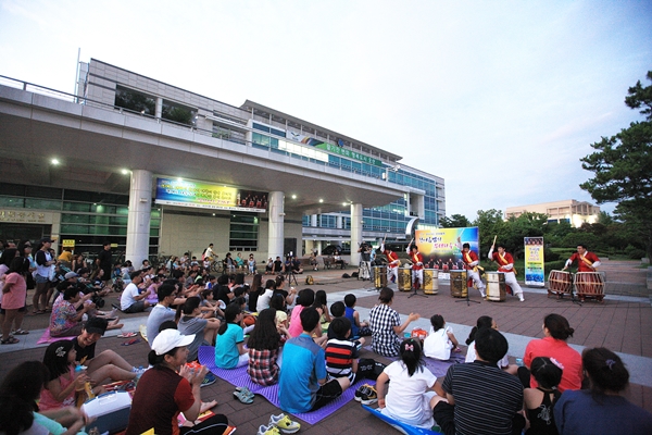 지난 1일 시청 광장에서 광개토 사물놀이단이 출연해 사물놀이와 비보이, 판소리, 비트박스, 모듬북 난타 등 융복합 퓨전콘서트를 펼쳐 더위를 피해 광장을 찾은 시민들에게 화려하고 멋진 공연을 선보였다.