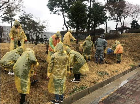 이날 참가자들은 이곳 도로변 133m 구간에서 1000여 그루의 개나리와 철쭉, 담쟁이 등을 심고 장마철에 대비해 배수로 정비 작업도 했다.