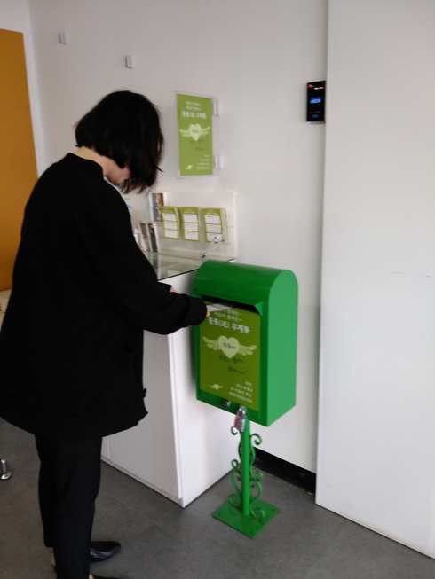 ‘소통창구 통통우체통’이라 이름 붙여진 초록색의 우체통은 얼굴을 맞대고 나누기 어려운 이야기, 소소한 이야기 등을 담아 전달하면 마음이 통할 수 있다는 취지로 설치됐다.