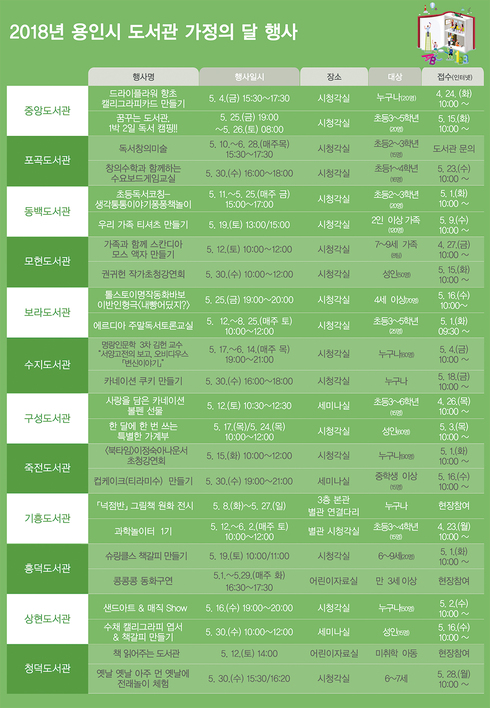 [시사인경제]용인시는 오는 5월 가정의 달을 맞아 관내 12개 공공도서관에서 다채로운 행사를 준비했다고 밝혔다.