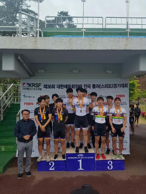 [시사인경제]오산시청 남자 롤러스포츠팀이 지난 21일에서 23일까지 3일 동안 김천종합스포츠타운에서 진행된 제38회 대한체육회장배 전국 롤러(스피드) 경기대회에서 남자일반부 15,000M 24분28초536으로 3위, 3,000M 계주에서 4분09초754로 2위를 차지했다.