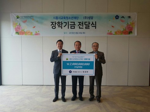65년 전통을 가진 시흥시 향토기업 ㈜성담은 청소년들의 건강하고 바른 성장이 시흥시와 국가발전의 원동력이라는 교육청소년재단의 취지에 공감해, 2004년부터 지역사회 청소년을 대상으로 장학 사업을 전개하고 있는 시흥시 교육청소년재단에 20억 원을 지정 기탁하게 됐다고 밝혔다. 기탁된 기금은 향후 지역 저소득 청소년들이 꿈을 키우고 성장하는데 필요한 소중한 장학금으로 사용하게 된다.