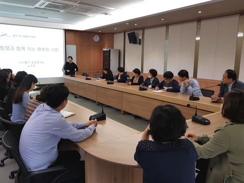 이번 교육은 직원들의 참여와 소통의 통로를 마련해 청렴정책 참여기회 확대와 청렴의식 제고를 위해 추진됐으며, 안산시 감사관에 신청해 추진하게 됐다.