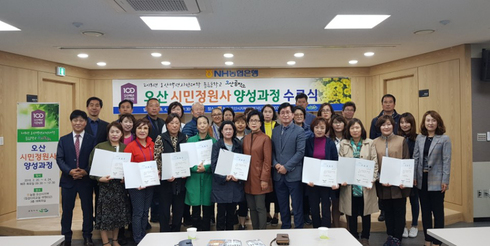 [시사인경제]오산시는 지난 24일 농협 오산시지부 대회의실에서 생활 속 정원문화 확산 및 시민과 함께 만들어가는 정원조성을 위해 마련한 ‘오산 시민정원사 양성과정’ 의 수료식이 개최됐다고 밝혔다.