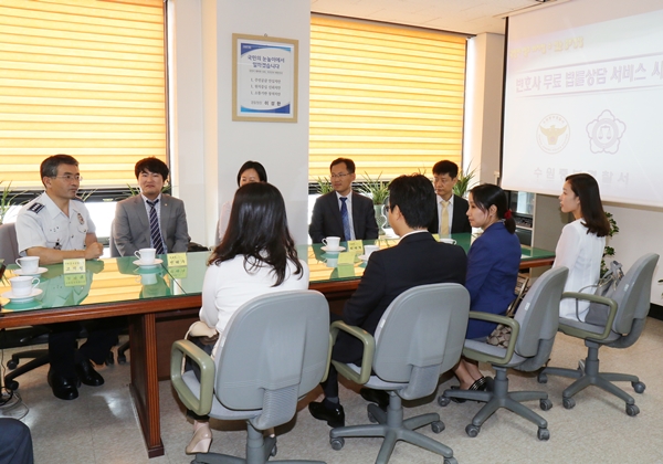 지난 11일부터 매주 3회(월, 수, 금 매 3시간씩) 경찰서 상담조사반에 마련된 변호인 상담실에서 민사소송 및 피해구제절차에 대해 변호사가 즉석에서 무료 법률상담을 하고 있다.