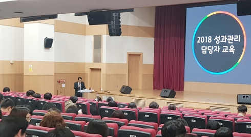 올해 수원시 성과관리를 담당할 부서별 공직자 180여 명이 참석한 이날 교육에서 수원시 성과관리팀 한상덕 팀장은 ‘2018 성과관리 운영계획’을 소개하며 ▲성과 평가체계 ▲최종점수 산정 비율 ▲올해 성과관리에서 달라진 사항 ▲분기·반기·연간 실적입력 기간 등을 설명했다.