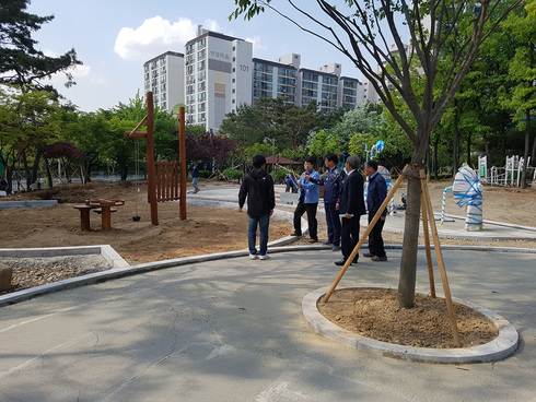 이와 함께 이달 말 준공되는 2곳 어린이공원 재정비 공사 현황도 점검했다. 에너지교육형 놀이공원으로 꾸며지는 도현어린이공원서는 유아용그네와 시소 등 발전기가 내장된 놀이기구 설치여부를 점검하고 숲속마을 어린이공원서도 조합놀이대 등 각종 놀이시설을 살폈다.