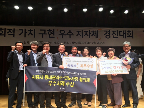 시 관계자는 “17개 전체 시·도에서 240여건의 우수사례가 행정안전부로 접수 되었으며, 그 중 공동체 분야에서 수상한 ‘동네 관리소’ 사례와 시민참여 분야에서 수상한 ‘민·노·사·정 협의체’ 사례가 일반 국민들의 폭넓은 공감을 받았다는 점에서 수상의 의미가 깊다”며, “특히 시흥시의 우수사례 모두 시흥시민이 적극적으로 지역 문제에 관심을 갖고 함께 고민하며 해결책을 만들어간 사례로서 시민 스스로 진정한 사회적 가치를 구현했다는 의미가 있어 굉장한 자부심을 느낀다”고 말했다.