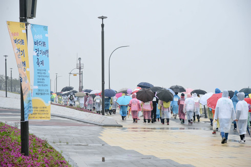 [시사인경제]시흥시 배곧한울공원과 오이도 일원에서 지난 12일 열린 ‘라라라 바다路 걷기 여행축제’에 비가 오는 궂은 날씨에도 많은 시민이 참가하여 해안선을 따라 아름답게 조성된 바닷길을 걸으며 즐거운 시간을 보냈다.
