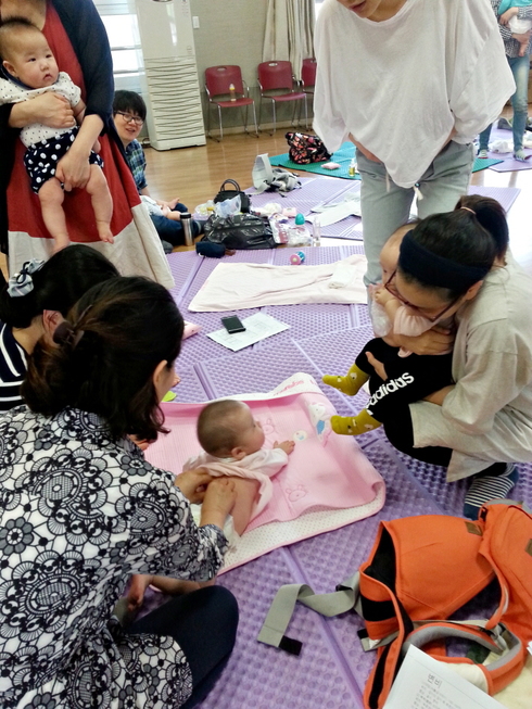 지난 1일 시작된 ‘베이비마사지 교실’은 엄마와 생후 2∼7개월 영유아가 함께 참여하는 프로그램으로, 전문 강사가 영유아 발·다리 성장점 마사지, 좌뇌·우뇌 자극 마시지 등 다양한 베이비마사지 방법을 알려준다. 프로그램은 29일까지 매주 화요일 오후 2시부터 진행된다.