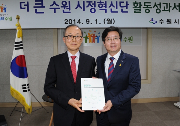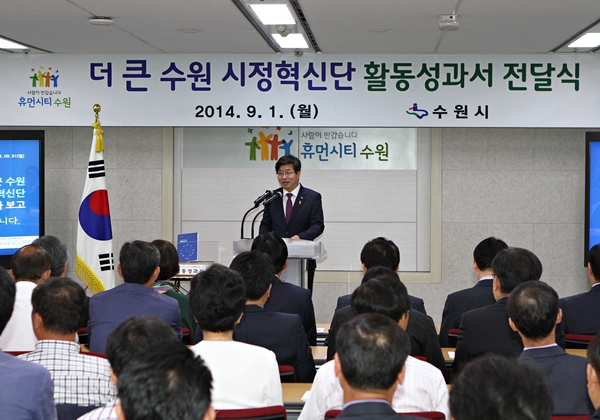 민선6기 수원시정혁신 밑그림을 그린 ‘더 큰 수원 시정혁신단(단장 이재은)’이 지난 7월초 구성돼 민선6기 수원시정이 추진할 시정혁신과 약속사업의 구체적인 방안을 모색하는 등 두 달간의 활동을 마무리했다.