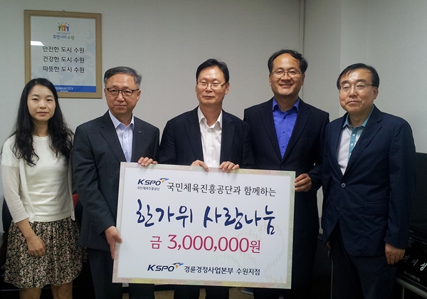 【경기인뉴스】수원시와 경륜경정사업본부 수원지점(이하 경륜수원지점)은 관내 어려운 이웃에게 300만원 상당의 온누리 상품권을 전달하기로 하고 지난 5일 전달식을 가졌다.