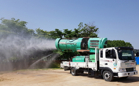 | 광역방제기를 활용한 산림 지역 돌발해충 방제작업 |