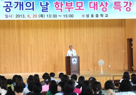 【경기인뉴스】이연수 기자 = 곽상욱 오산시장이 지난 20일 성호중학교(이우탁)에서 열린 학부모 수업공개 행사에 초청받아 ‘오산의 학교 밖 교육 이야기’라는 주제로 특강을 실시했다. 이번 특강은 성호중 학생·학부모 100여명을 대상으로 한 수업공개 행사에 앞서 오산의 혁신교육을 주도하고 있는 곽상욱 시장에게 성호중학교에서 특강을 요청함으로써 실시됐다.
