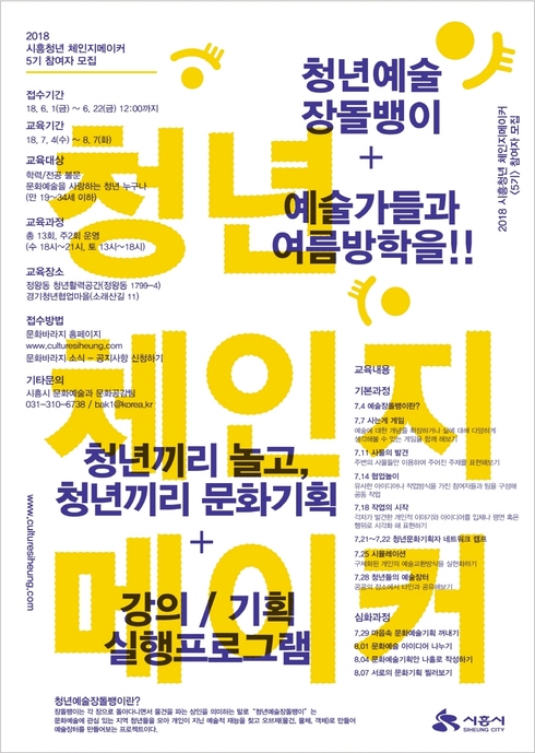 [시사인경제]시흥시는 문화예술분야의 창의적 인재 양성과정 ‘2018 시흥청년 체인지메이커 5기’ 참여자를 1일부터 오는 22일까지 모집한다.