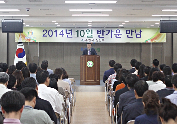 이날 ‘10월의 반가운 만남’은 제20대 장안구청장으로 취임한 이상윤 구청장의 행정 철학인 ‘구민이 안전하고 편리한 장안구’를 만들기 위해 구정방향과 역점시책에 대한 직원 특강으로 실시되었다.