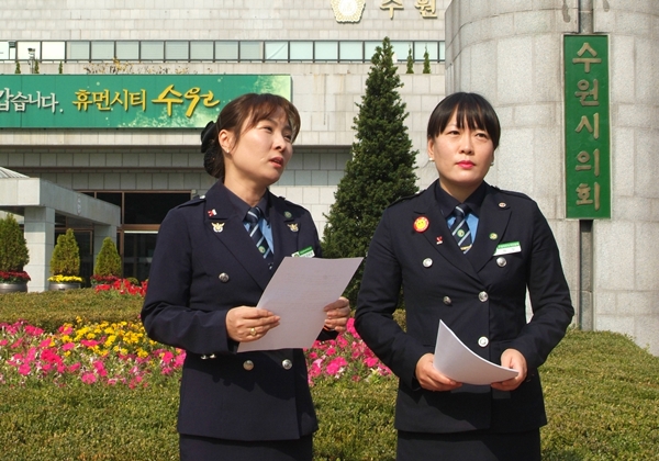 【경기인뉴스】수원시 서부.남부 녹색어머니연합회 전소영.구은주 회장은 7일 오후 2시 수원시청 정문 앞에서 기자회견을 갖고 최근 공문서를 위조한 혐의를 받고 있는 김모 전 회장과 해당 녹색어머니연합회에 신속하고 엄정한 수사를 촉구하는 성명서를 발표했다.
