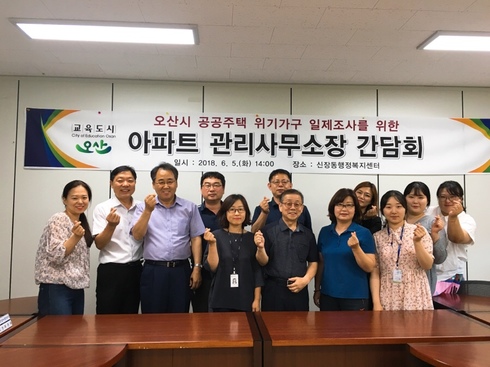 [시사인경제] 오산시 무한돌봄센터는 지난 5일 신장동행정복지센터에서 공동주택 관리사무소장, 동 맞춤형복지팀, 사례관리사등과 함께 위기가구 발굴을 위한 간담회를 개최했다.