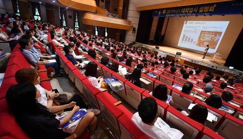 [시사인경제]용인시가 지난 16일 강남대학교 우원관에서 개최한 ‘2019학년도 대학입시 설명회’에 학생과 학부모 1500여명이 몰려 뜨거운 관심을 보였다.