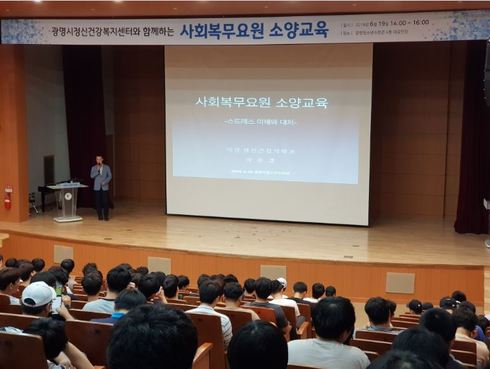 [시사인경제]광명시정신건강복지센터는 지난 19일 청소년수련관에서 관내 200여 명의 사회복무요원을 대상으로 ‘광명시정신건강복지센터와 함께하는 사회복무요원 소양교육’을 실시했다.