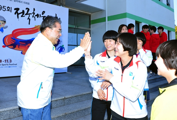 이재정 경기도교육감은 개막식 전에 출전한 경기도 학생선수들이 선전하고 있는 경기장을 돌며 “평소에 갈고 닦은 실력을 유감없이 발휘해 좋은 추억과 경험을 쌓길 바란다“며 예선 경기를 마친 학생들과 일일이 악수와 하이파이브를 하며 격려했다.