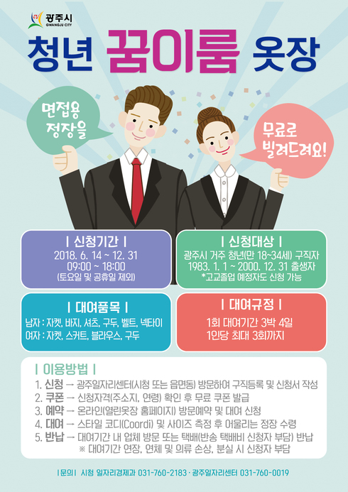 [시사인경제]광주시는 22일 취업을 준비하는 청년들을 위해 면접 정장을 무료로 대여해 주는 ‘청년 꿈이룸 옷장’ 사업을 지난 14일부터 운영하고 있다고 밝혔다.