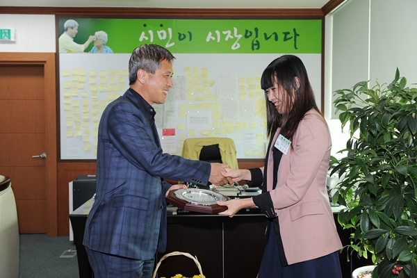 지난 29일 곽상욱 오산시장은 집무실에서 김민지씨를 민선6기 제3대 1일 명예시장으로 위촉하고 시정운영 현안사항 등을 논의하며 명예시장으로서의 임무를 성실히 이행해 줄 것을 당부했다.