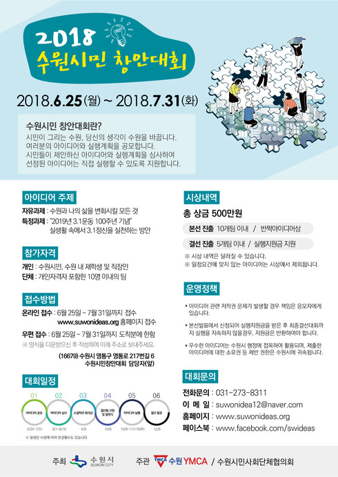 수원시민창안대회 홈페이지, 우편으로 응모할 수 있다.