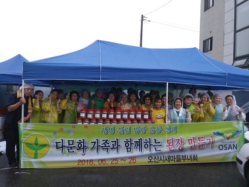[시사인경제]오산시 새마을부녀회는 지난 26일 새마을회관에서 다문화 여성 20명과 부녀회원 30명이 참여한 가운데 우리나라 전통음식 재료인 된장 만드는 방법을 알리기 위하여 다문화 여성들과 함께 전통된장 체험행사를 진행했다.