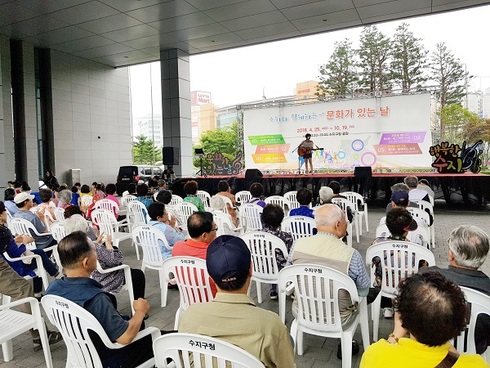 [시사인경제]용인시 수지구는 27일 구청광장에서 매달 마지막 주 수요일 점심시간을 이용해 주민들에게 다양한 공연을 선보이는‘문화가 있는 날’행사를 열었다.