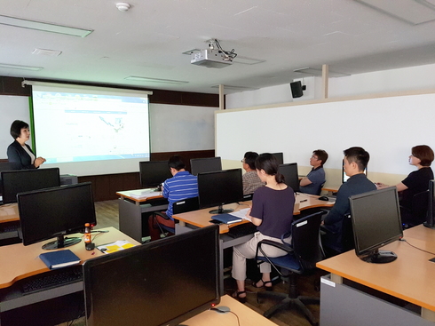 | 용인시가 환경개선부담금 담당 직원들을 대상으로 전자 압류 시스템 교육을 하고 있다. |