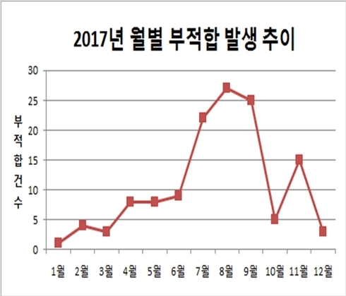 연구원 조사에 따르면 지난해 잔류농약 기준 위반으로 부적합판정을 받은 농산물은 모두 130건으로 이 가운데 57%에 달하는 74건이 여름철인 7월부터 9월까지 발생했다. 연구원은 장마와 기온 상승으로 농가의 농약사용량이 많아지는 것을 주요원인으로 보고 있다.