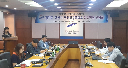 ‘찾아가는 지방규제신고센터’ 활성화 일환으로 진행된 이번 회의는 안산시와 안산상공회의소가 기업들의 규제애로사항을 현장에서 직접 청취해 발굴·건의하고, 경기도 규제개혁추진단은 건의한 기업규제 발굴과제에 대한 검토의견을 설명 후 향후 개선 방안을 논의하는 방식으로 진행됐다.