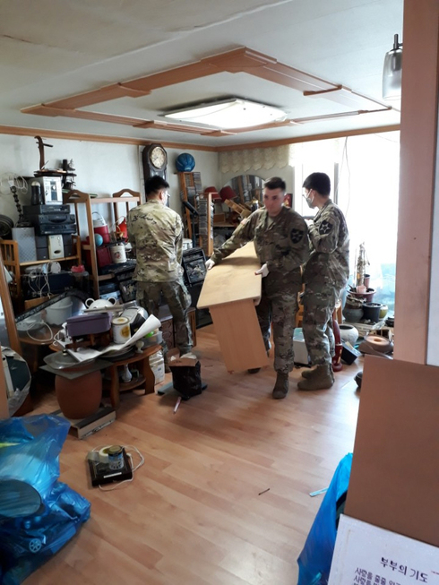[시사인경제]동두천시 무한돌봄센터는 자원봉사센터에서 연계한 미2사단70여단지원대대 봉사자 5명과 함께 3일 쓰레기로 가득 찬 H씨의 집을 대청소했다.