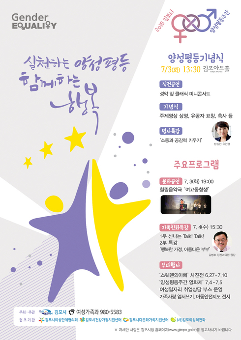 [시사인경제]김포시가 양성평등주간을 맞아 음악회, 사진전, 영화제, 특강 등 다채로운 프로그램을 김포아트홀에서 선보인다.
