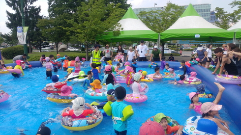 두 곳에 마련되는 물놀이장은 대형 튜브에 공기를 채워 만드는 조립식 에어풀장이다. 풀장 2개와 에어슬라이드로 이뤄져 있다.
