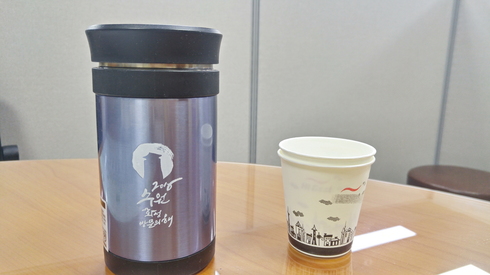 특히 ‘일회용 컵 사용 안 하기’를 중점적으로 추진한다. 일회용품 중 사용량이 가장 많은 일회용 컵 사용을 억제하기 위해 전 직원이 개인용 컵·물통을 사용하도록 하고, 정수기에 일회용 컵 사용제한 홍보 스티커를 붙일 예정이다.
