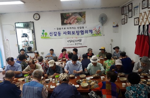 [시사인경제]용인시 기흥구 신갈동은 11일 저소득 어르신 40여명을 관내 식당에 초대해 보양식을 대접하는 복달임 행사를 가졌다.