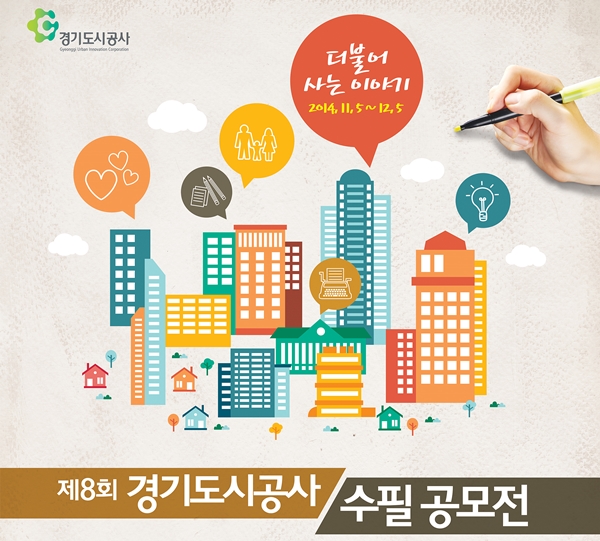 【경기인뉴스】제8회 경기도시공사 수필공모전이 5일 접수 마감한다. 해마다 1천여 편에 가까운 작품이 접수되어 성황을 이룬 경기도시공사 수필공모전의 금년도 주제는 “더불어 사는 이야기”이다. 대한민국 국민이면 누구나 참여할 수 있다. (등단작가 제외)