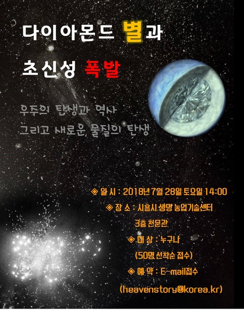 [시사인경제]시흥시 생명농업기술센터 천문관에서는 여름방학을 맞이해 ‘다이아몬드 별과 초신성 폭발’ 특강을 준비했다. 이번 주제는 흥미로운 천문 주제를 발굴하고 시민 및 학생들의 우주에 대한 호기심을 자극하기 위해 선정됐다.