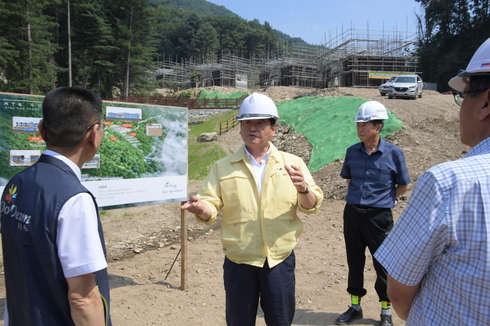 이번 현장 방문은 현재까지 사업별 추진상황 및 문제점, 향후계획을 보고 받았으며, 태풍, 호우 등 여름철 자연재난에 대비해 시설 유지관리 상태와 재해위험요인, 사전조치 사항 등 사업현장을 꼼꼼히 점검하고 사업현장 안전 당부 및 사업별 지시사항을 전달했다.