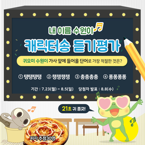 [시사인경제]수원시는 시 공식 캐릭터인 ‘수원이’의 캐릭터송 가사를 맞히면 피자, 부채 등 알찬 선물을 주는 SNS 이벤트를 연다.