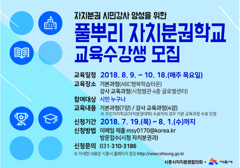 [시사인경제]시흥시는 지난 19일부터 오는 8월 1일까지 2주 동안 ‘풀뿌리 자치분권학교’ 수강생을 모집한다.