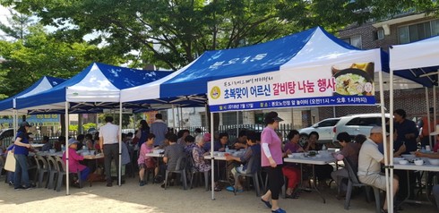 [시사인경제]안산시 본오1동 바르게살기위원회는 지난 17일 본오경로당 앞 놀이터에서 본오·본원경로당 어르신 100여명을 모시고 사랑의 갈비탕을 대접했다.