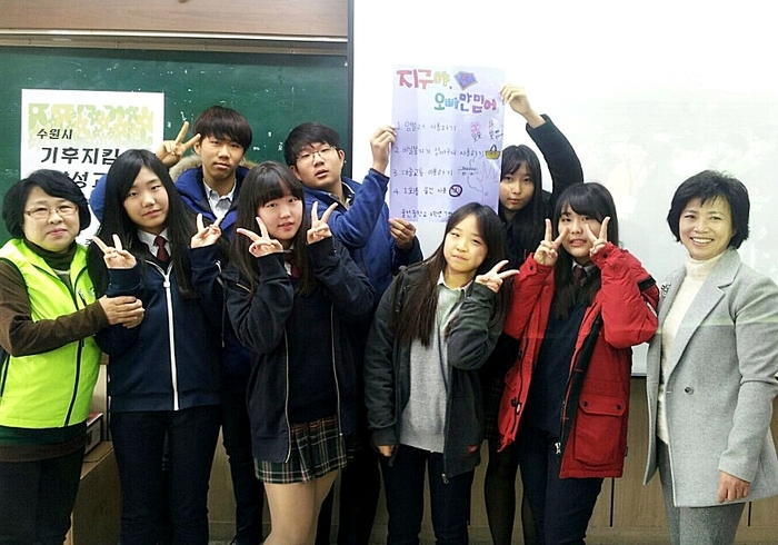 【경기인뉴스】수원시그린리더협의체는 수원시기후변화대응과에서 추진한 '탄소제로온실가스감축'사업 공모전의 일환으로 지난 9월부터 12월까지 김금자 부회장을 비롯한 장안구 정자1동 그린리더 12명이 함께 '청소년기후지킴이 양성교육사업‘을 율전중학교 2.3학년을 대상으로 실시 해 왔다.