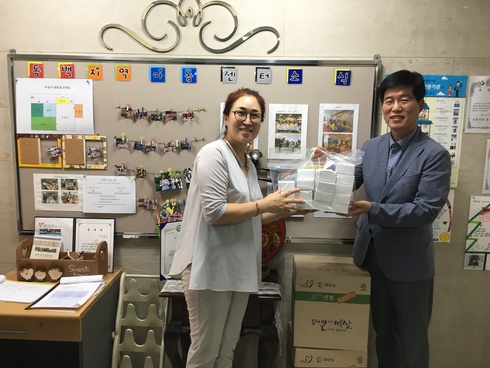 이날 직원들은 지역아동센터 내 어린이들이 필요로 하는 종이컵 2000개도 함께 기부했다.