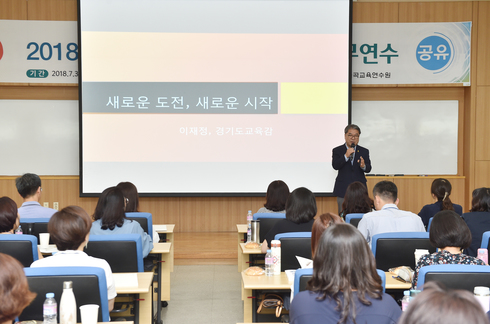 [시사인경제]이재정 경기도교육감은 30일 수원 보훈교육연구원에서 진행 중인 ‘2018 교육전문직 임용예정자 직무연수’에서 특강을 하고, 연수생들과 소통의 시간을 가졌다.