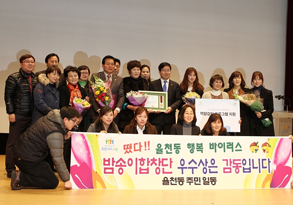 ‘생태교통마을해설사 역량강화교육 및 안내활동’을 추진한 행궁동 ‘마을농부’가 공동체 프로그램 분야에서 최우수상을 받았으며 ‘우주정원 만들기’사업으로 좋은 성과를 거둔 송죽동 ‘송도빌라 행복한 사람들’이 시설공간 분야에서 최우수상을 수상했다. 이와 함께 마을만들기 참여 주민 14명에 대한 표창과 관계자 10명에게 감사패가 주어졌다.